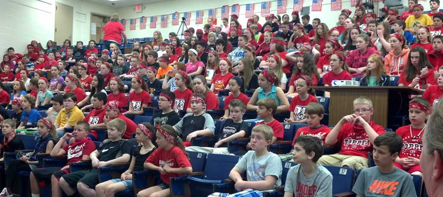Assembly at Middle School, Ohio. “Man in the Red Bandanna”. Alison Crowther, Key Note Speaker